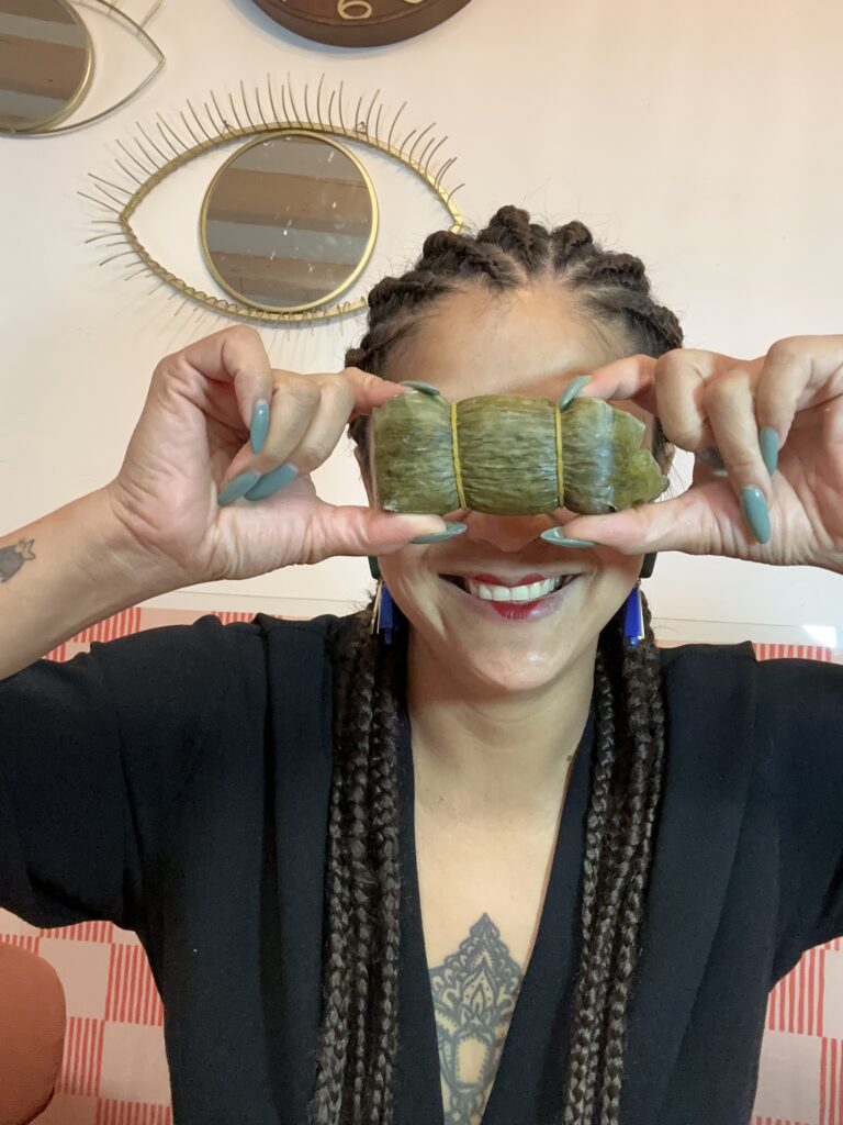 Il s’agit d’un gâteau de riz, cuit longuement dans une feuille de bananier.